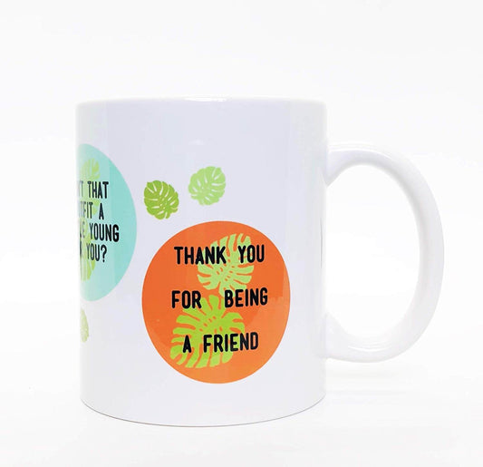 Brindle Southern Golden Girls Gift, Funny Golden Girls Coffee Mug: Sassy Quotes, Vintage Beachy Leaf Design - Thank You For Being A Friend, Cheesecake