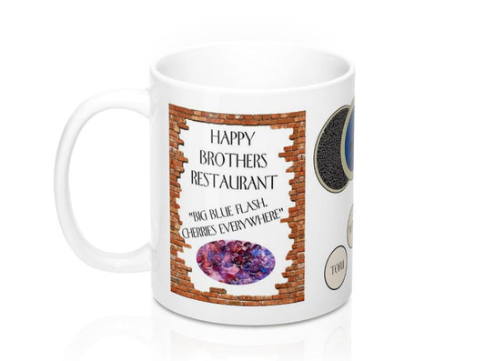 Double - Sided HIMYM Coffee Mug, 11 oz. Ceramic How I Met Your Mother Gift Mug - Yellow Umbrella, Blue French Horn, Barney's Ducky Tie Suit up and Ted's Red Cowboy Boots