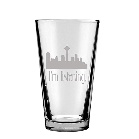 KACL Pint Glass Set of 2 - KACL and I'm Listening with Seattle Skyline, Frasier Fan Gift, Engraved Set of Two 16oz. Drinking Glasses