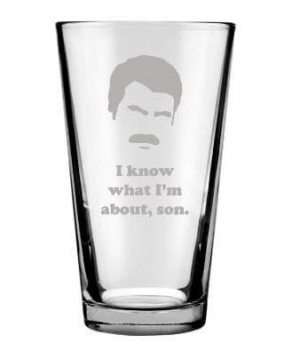 Ron Swanson Drinking Glasses: Parks and Recreation Inspired Engraved Pint Glass Gift Set for Ron Swanson Fan